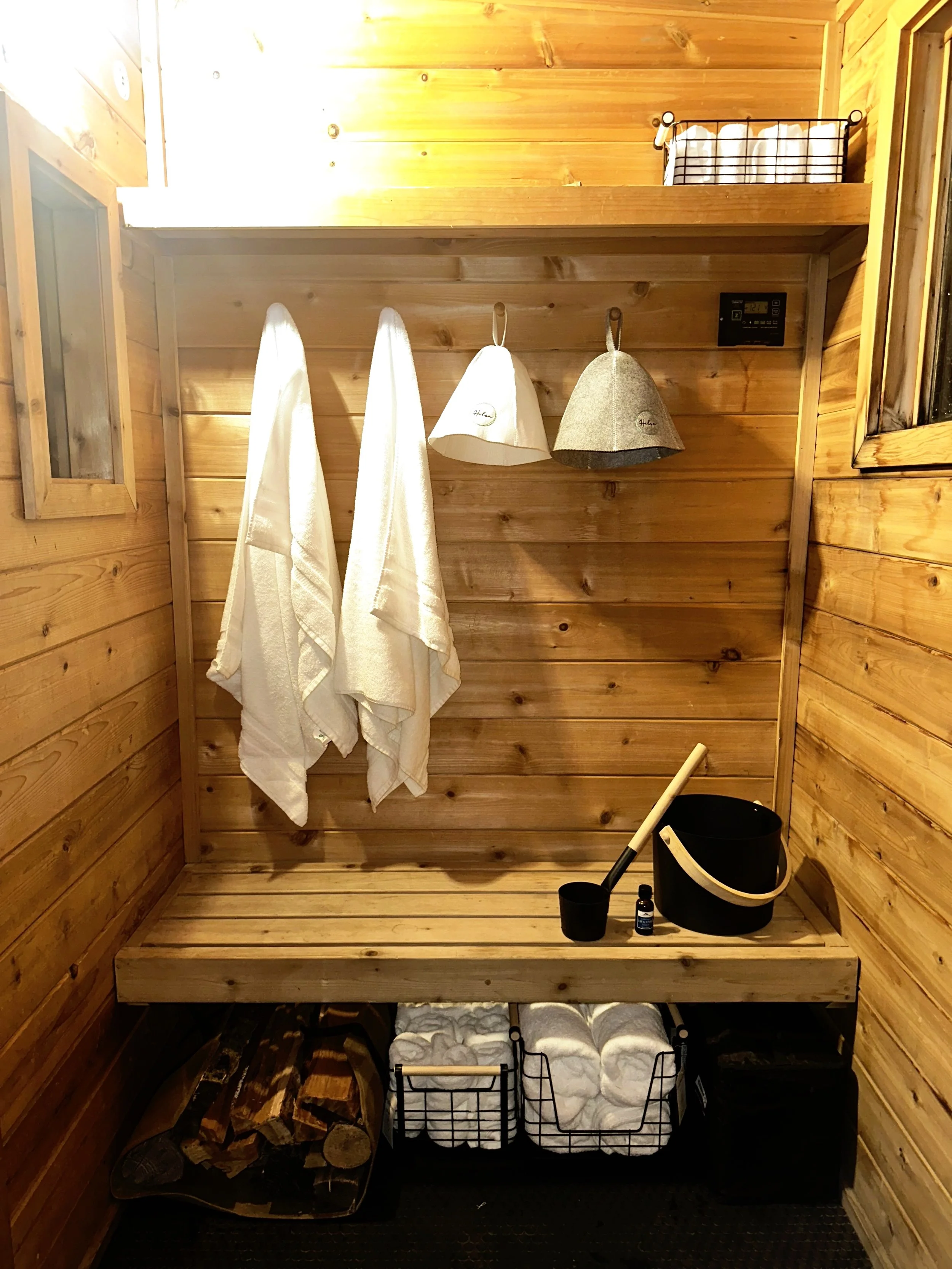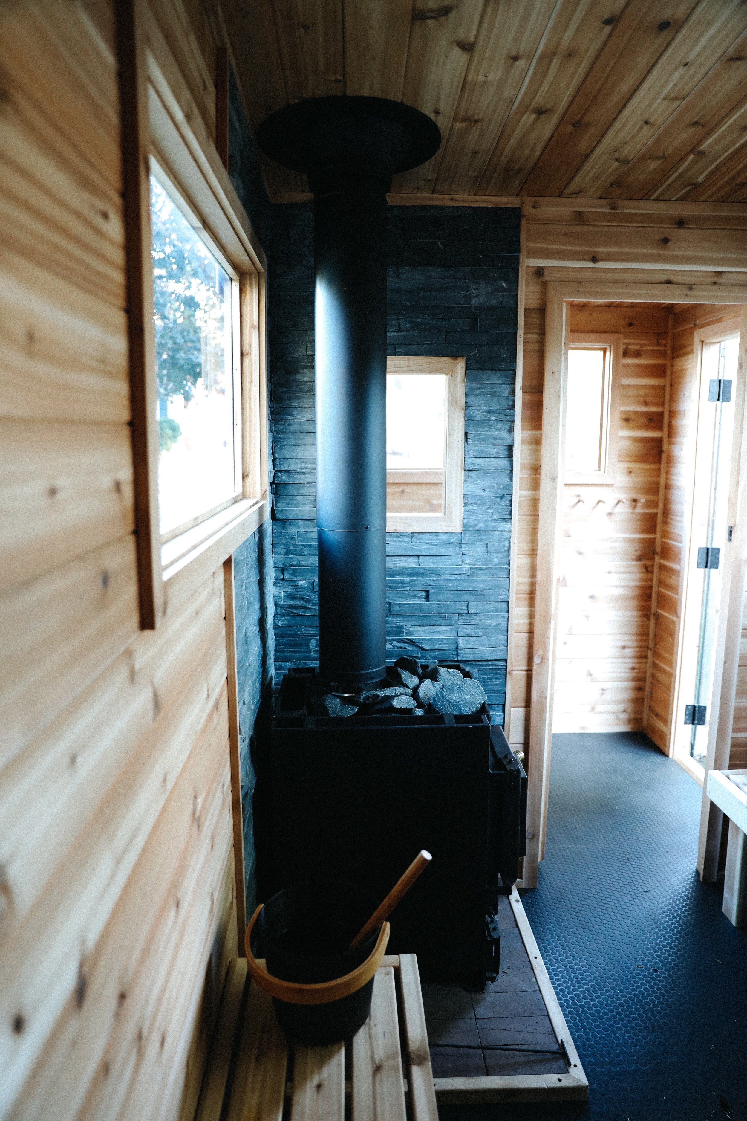 At the heart of the sauna is a premium Harvia Pro 20 wood stove, known for its efficient, even heat and smooth, traditional steam—bringing the Finnish sauna experience wherever you roam.